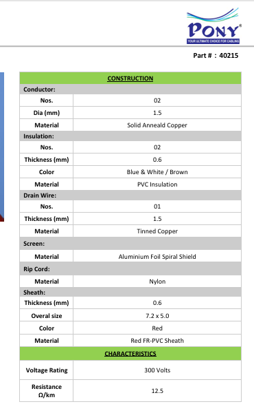 02 Core 1.5mm2 Fire Retardant Cable PONY