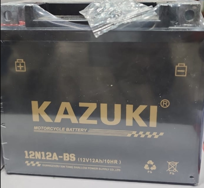 A Kazuki bike battery with a specification of 12V 12Ah is a type of lead-acid battery designed for use in motorcycles, scooters, and other small vehicles. Here’s a brief description: